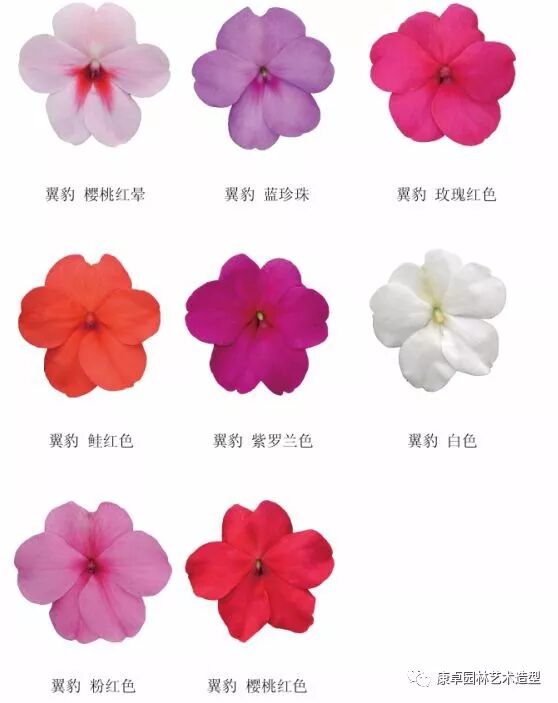 非洲凤仙翼豹系列颜色较为丰富常用的颜色有: